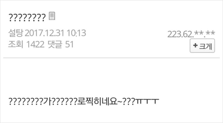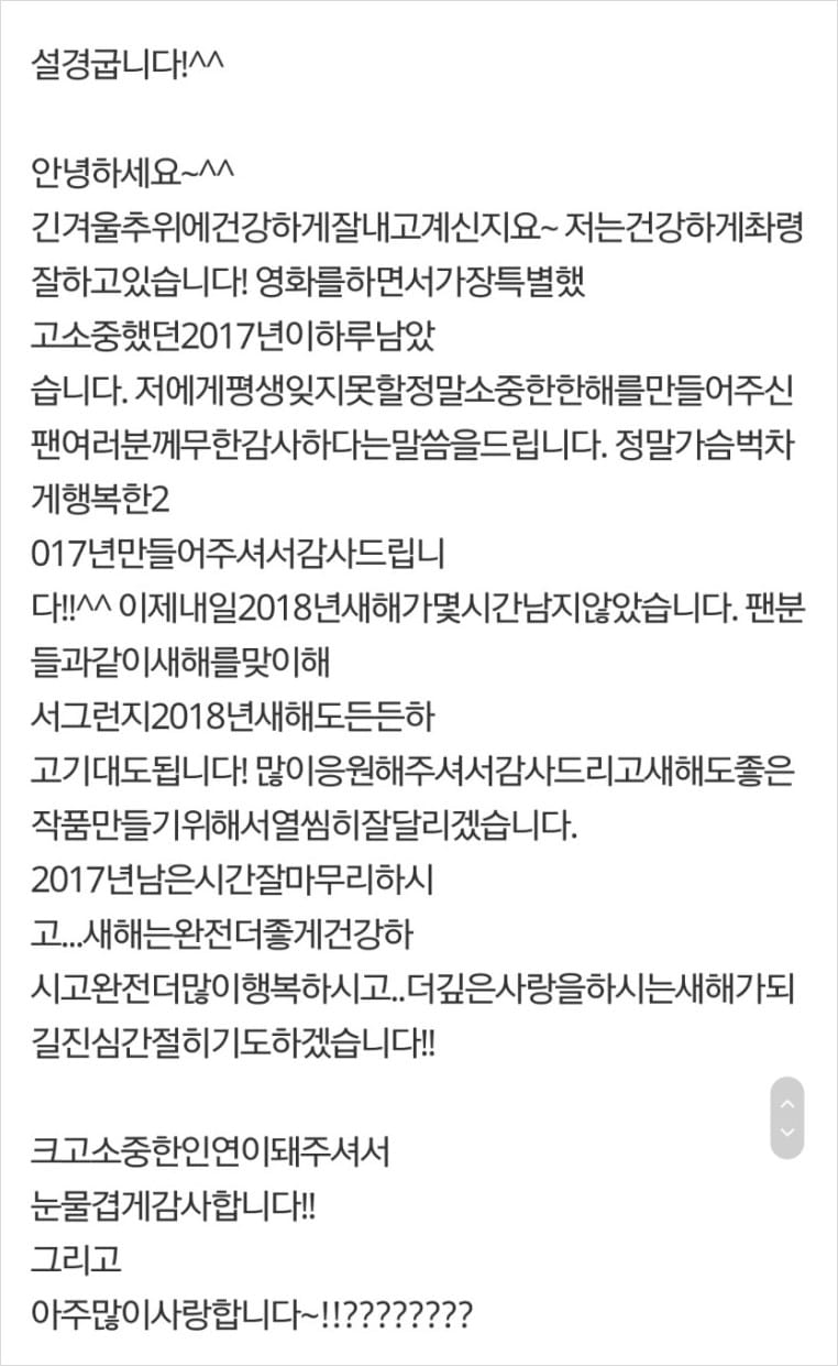 나중에 누가 내게 2017년이 어떤 한 해였냐고 묻는다면, 그해 마지막날 아침에 설경꾸의 인사글과 물음표 대잔치 글 올라왔던 그 이유 하나만으로도 기가 막히게 즐겁고 웃음 넘치는 멋진 한 해였다고 답해주겠다.