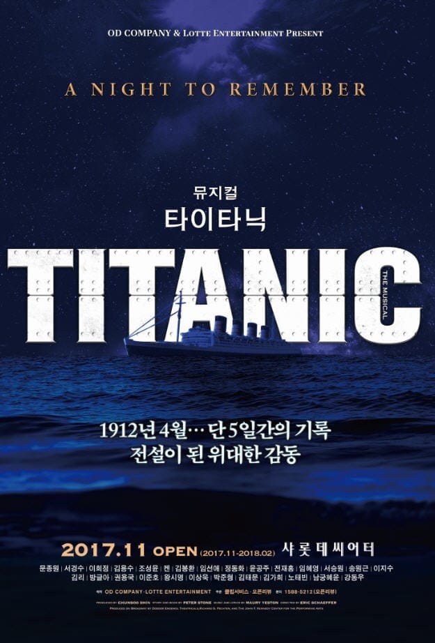 1997년 영화 타이타닉을 기반으로 만든 뮤지컬이 아니다. 이거 봐놓고 왜 '마이핥윌고온' 안 부르냐고 따지면 안 된다.