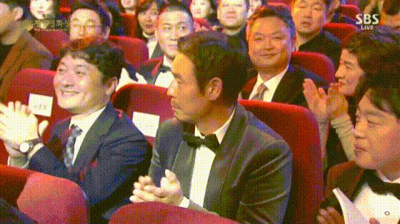 아저씨 본인이 먼저 손 흔들흔들 안뇽안뇽 하기도 하고, 주변에 있는 관계자나 배우들이 팬들 존재 일깨워(?)줄 때마다 아까 인사했는데 또 손 흔들흔들 해주고. 저렇게 수상자 기념사진 찍으러 무대 올라가서도 또 안뇽안뇽.