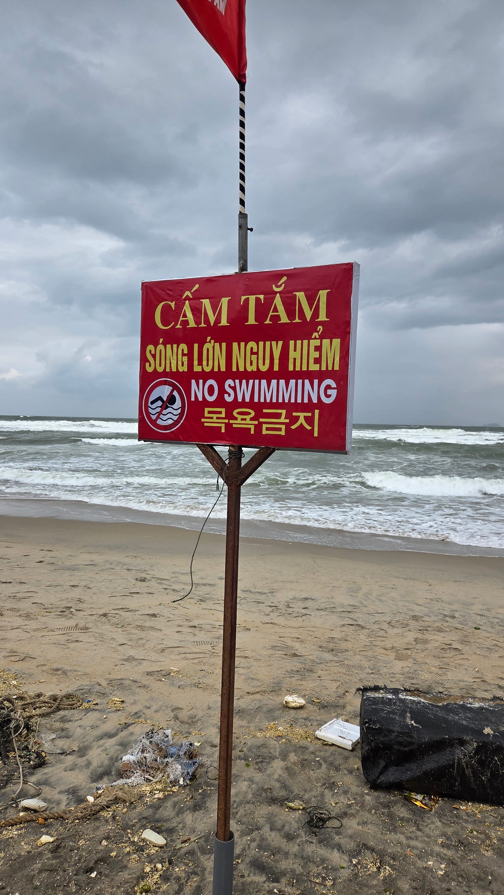 비가 부슬부슬 왔는데 안방비치는 그 정도 비에도 바다에 못 들어가게 했지만 미케비치는 다들 물놀이 중이길래 왜지? 싶었다. 안방비치는 그 직후에 폭우가 왔던 걸 생각하면 비가 거세질 거란 일기예보를 알고 있어서 막았나 싶고, 미케비치는 계속 부슬부슬 상태여서 냅뒀나 싶다.
